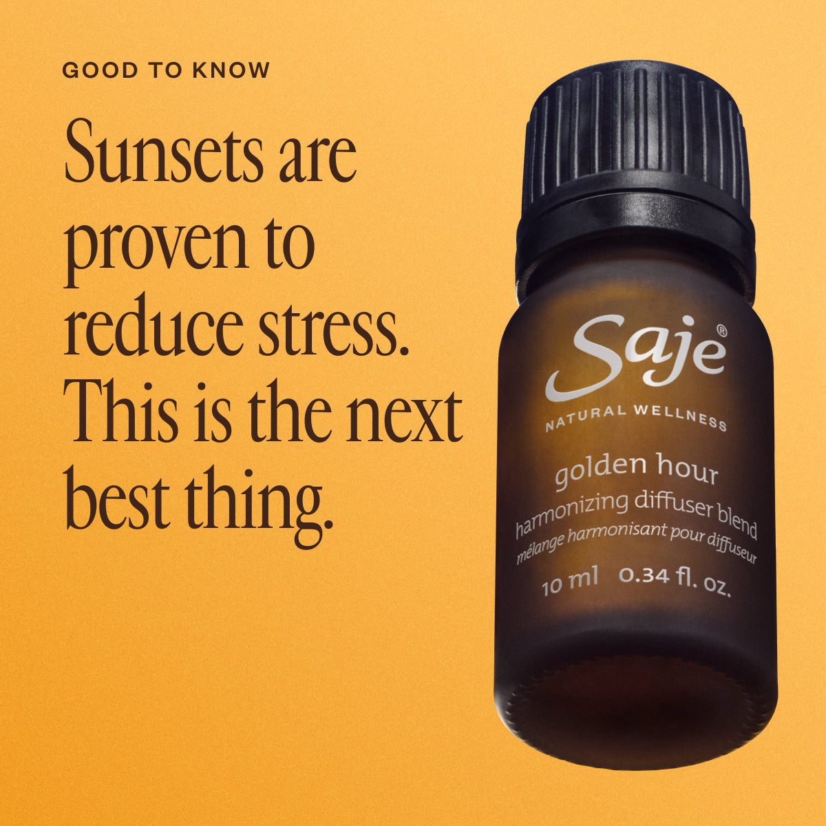 Golden Hour is a harmonizing blend that was inspired by the enchanting moments during sunrise and sunset when the sky is filled with warm, golden light. This unique blend invites us to pause and embrace gratitude, grounding us in the present moment as we transition from daytime to night. It’s blended with sweet, gentle and light orange, known to help provide natural feelings of contentment and happiness. It contributes to a warm, happy ambiance that's perfect for summer evenings. Balsam Peru is warming & joyful and has a sweet, vanilla-like aroma that promotes deep breathing and helps relieve feelings of restlessness. It's been used to calm nervousness and promote an atmosphere that is calm and soothing. Lastly, the key ingredient in this blend is frankincense, which is herbal, earthy and resinous. This sacred oil is reputed to have many supportive benefits, like encouraging a serene state of mind, aiding in focus and supporting emotional balance.