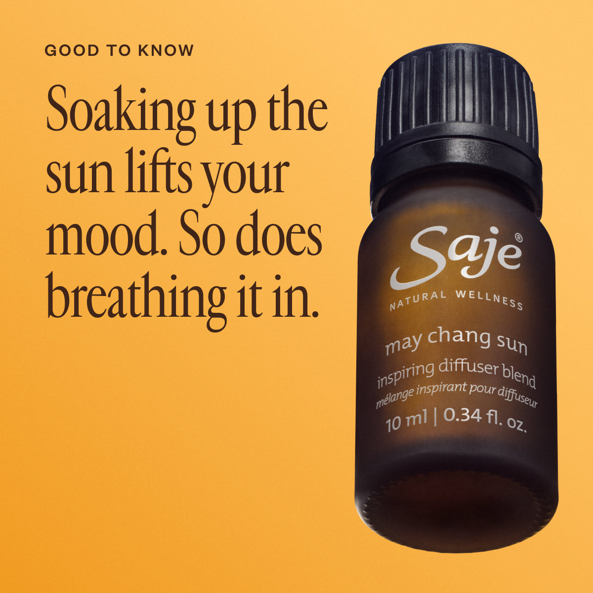 As with all products offered at Saje, our diffuser blends are made with only 100% pure essential oils, tested for purity, efficacy and the absence of things like heavy metals or pesticides. We carefully in-house blend each formula to not only provide pure, potent and pleasing aromas, but to ensure that you receive the full therapeutic benefits of the essential oils, like a natural lift in your mood, a calm and centered feeling when you’re seeking relaxation, and support for deep breathing and tranquility when you’re looking for your best rest. Below are our top picks for summertime diffusing: